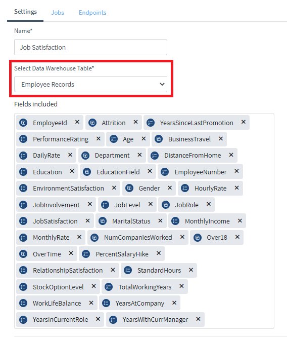 - All fields from that Data Warehouse will be included on the list and cannot be removed.