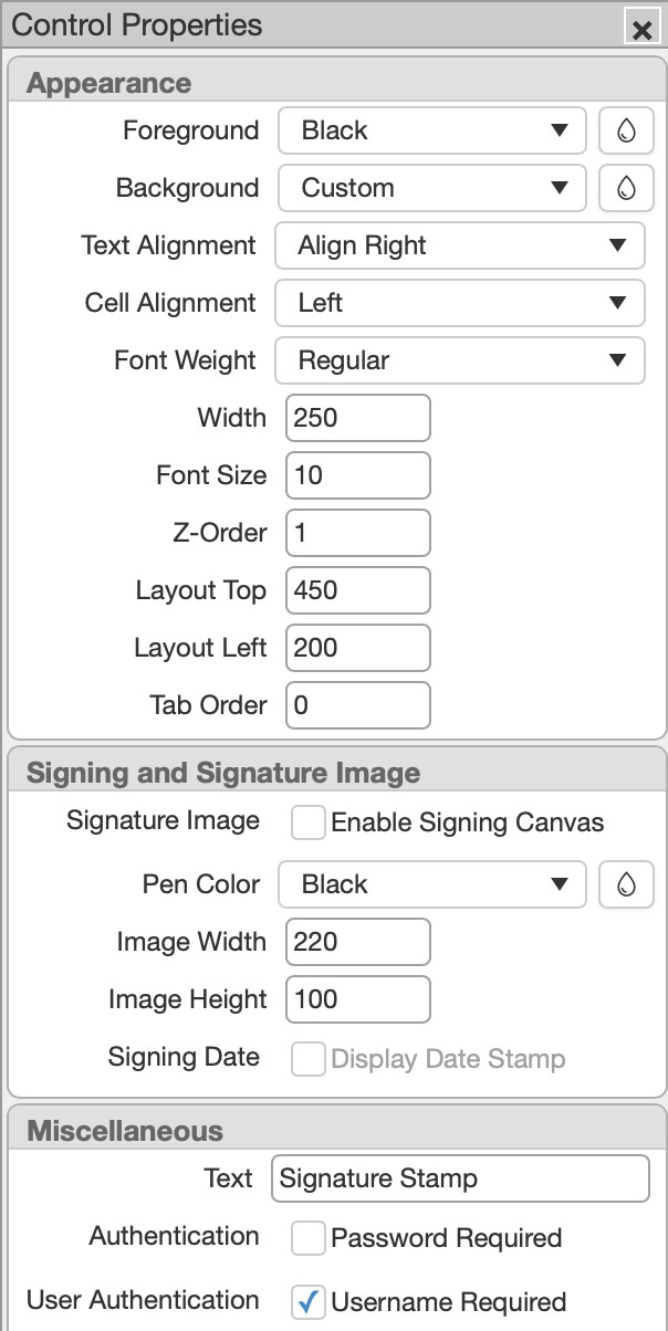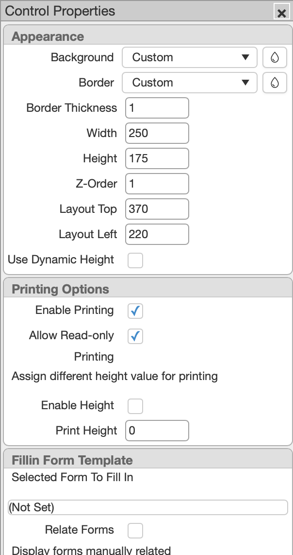 - Z-Order – This property allows fields to be layered on top/beneath other fields in the form.