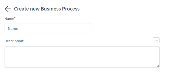 - After all fields are completed, click on Create for confirmation of the Business Process creation or Cancel for discarding changes. In both cases, you will be redirected to the Processes page.